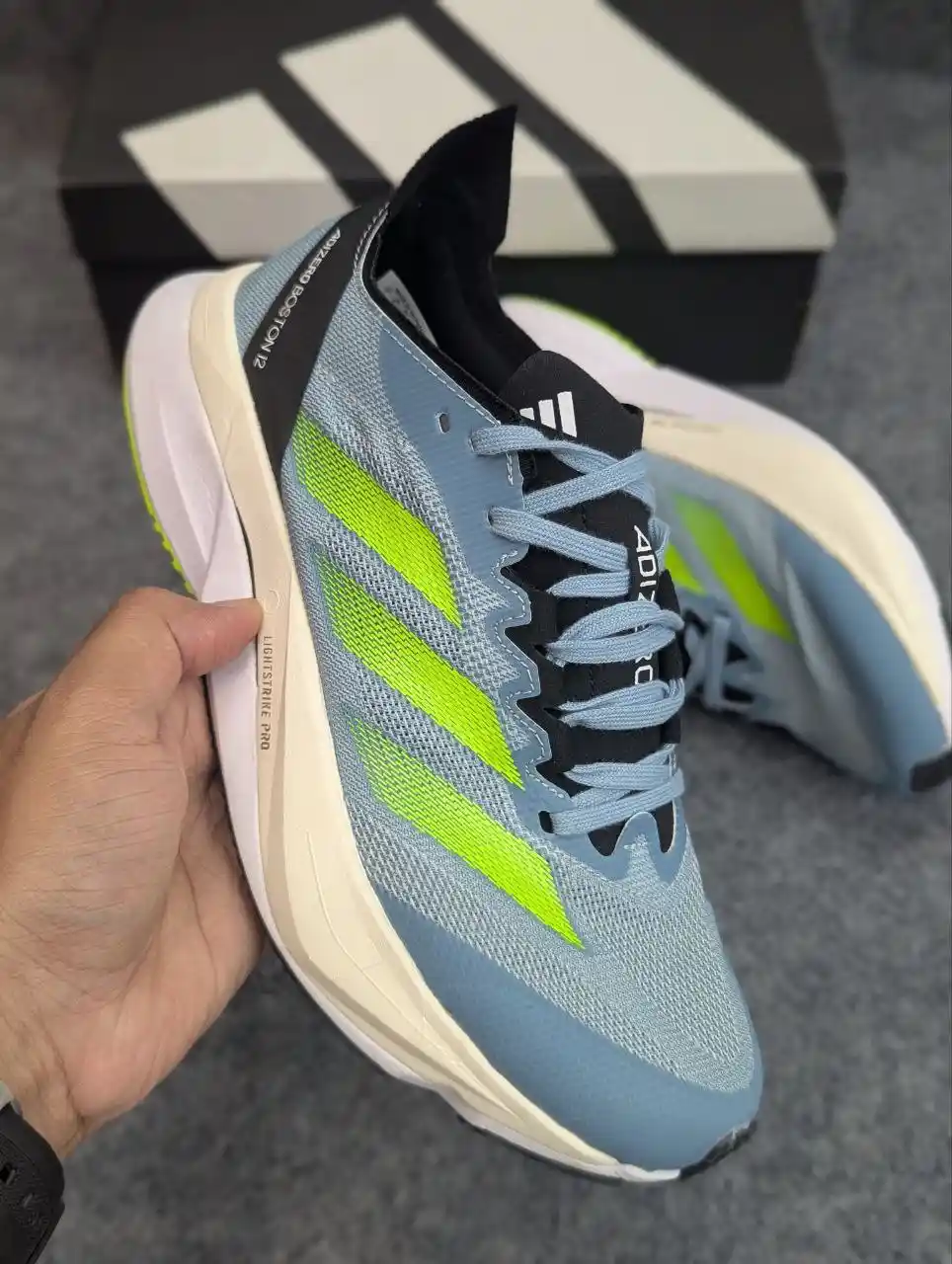 Run faster, train harder, and stay stylish with the Adidas Adizero — the ultimate performance sneaker built for speed and comfort. Engineered with Lightstrike Pro cushioning and a lightweight breathable mesh upper, this shoe delivers exceptional energy return and ventilation for long runs or daily workouts. Its durable rubber outsole ensures maximum grip on any surface, giving you stability and confidence with every step.